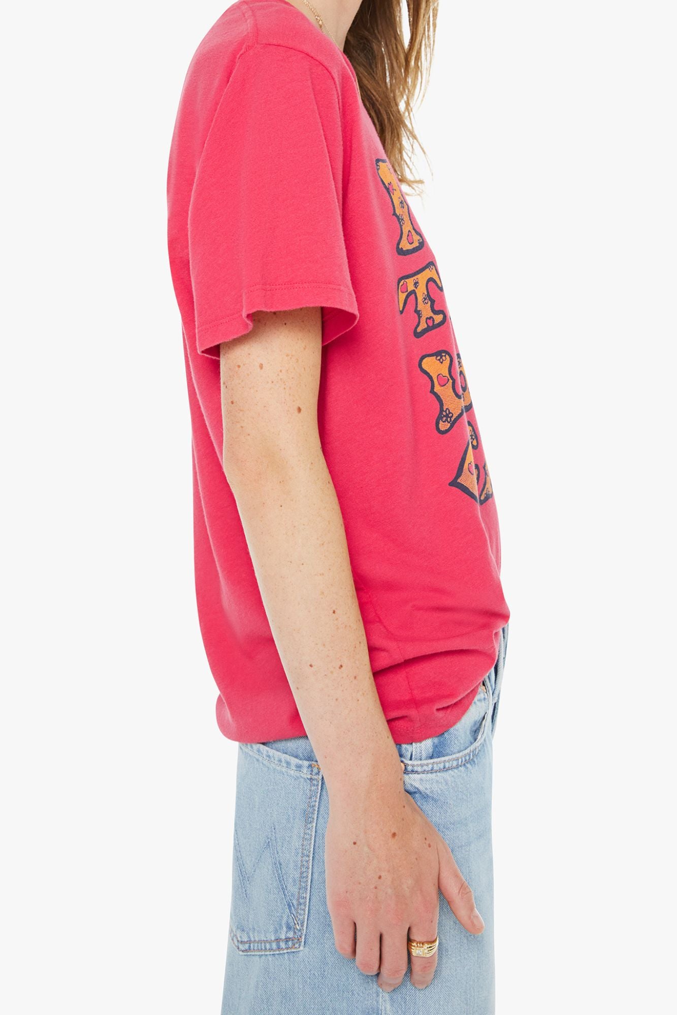 The Rowdy is a statement crewneck tee that combines comfort with purpose. Cut in an oversized fit with a clean hem, this hot pink tee is crafted from a recycled cotton blend—a sustainable choice that doesn't compromise on softness or durability. The standout feature is the bold oversized yellow block text message from MOTHER across the front, making it perfect for those who want their style to speak volumes. Whether you're layering it or wearing it solo, The Rowdy delivers effortless attitude and everyday wearability.