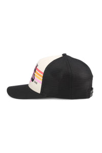 Hat off to this washed cotton twill tour essential featuring front panel stripes and logo in matte screen print. With a pre-curved visor and playful plastic snapback, it's perfect for rocking out. Mesh middle and back panels keep you cool on the road. Don't miss this piece of Pink Floyd history!