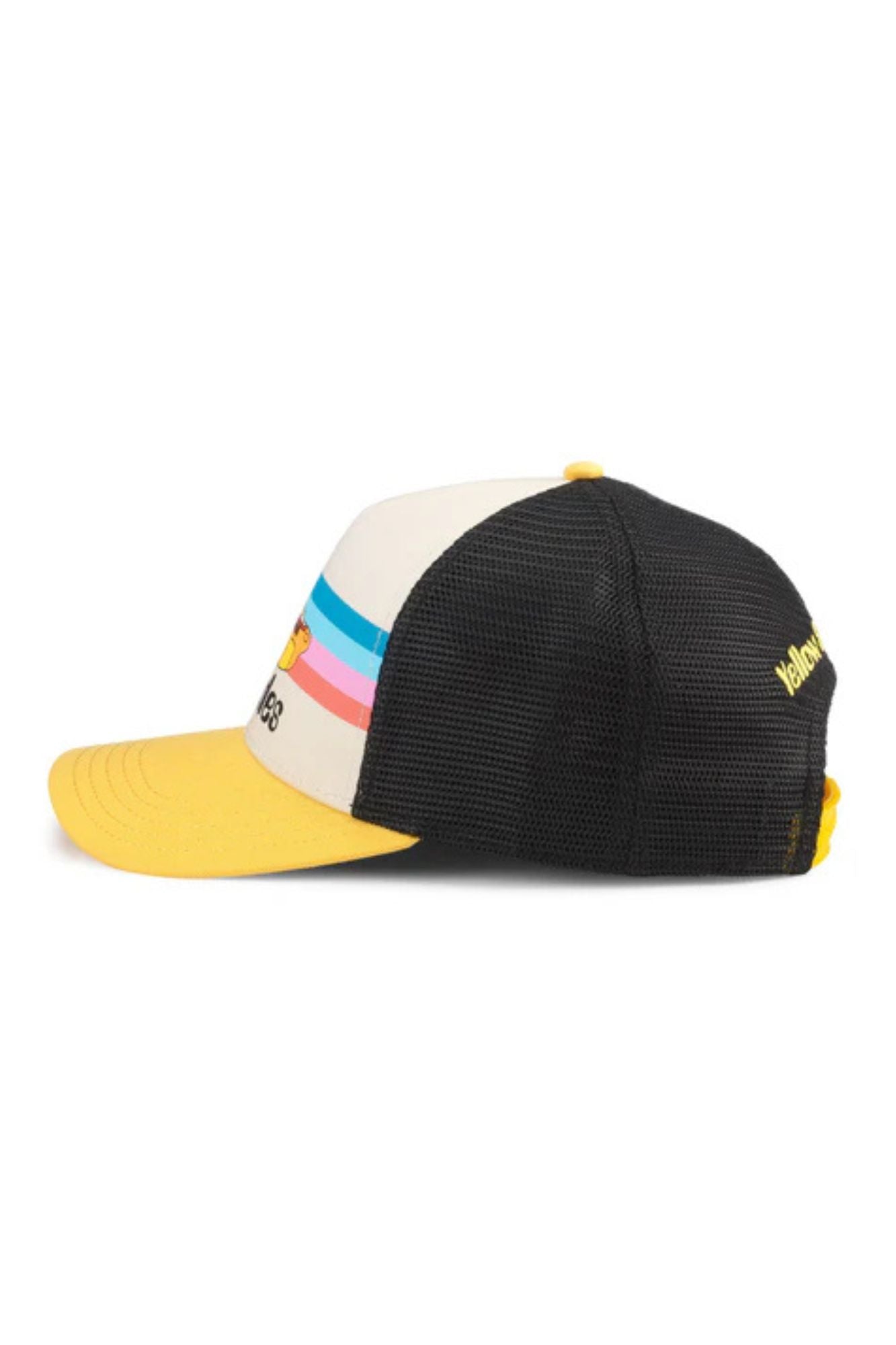 Sail away in style with the Sinclair Yellow Submarine Hat. Made with washed cotton twill and a pre-curved visor, this hat is perfect for sunny days. The mesh middle and back panels keep you cool, while the front panel stripes and logo add a pop of color. Plus, the plastic snapback ensures a comfortable fit.