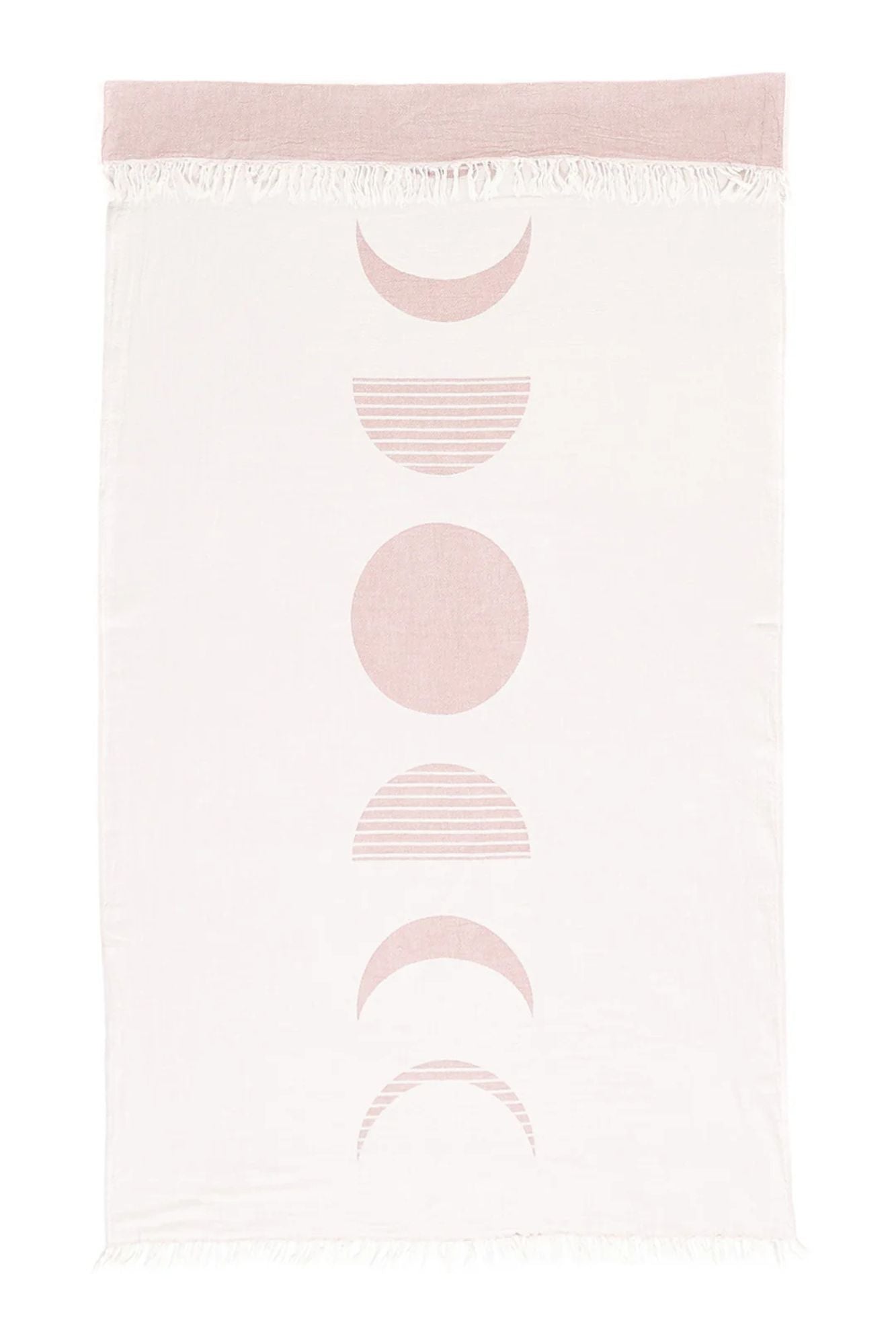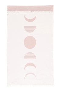 Experience luxury with The Moon Phase Towel. Custom designed with a beautiful moon phase pattern, this signature Turkish cotton towel offers both style and function. Perfect for a day at the beach or pool, its tassel fringe and muted tones make it a beautiful addition to any home.
