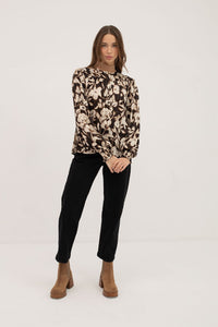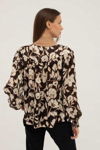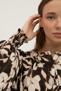 Float effortlessly in our Dinha Blouse. With ruffled cuffs and lightweight, semi-sheer fabric, this button-up offers an airy, ethereal look. Perfect for a playful, carefree vibe (with a touch of buttoned-up sophistication).