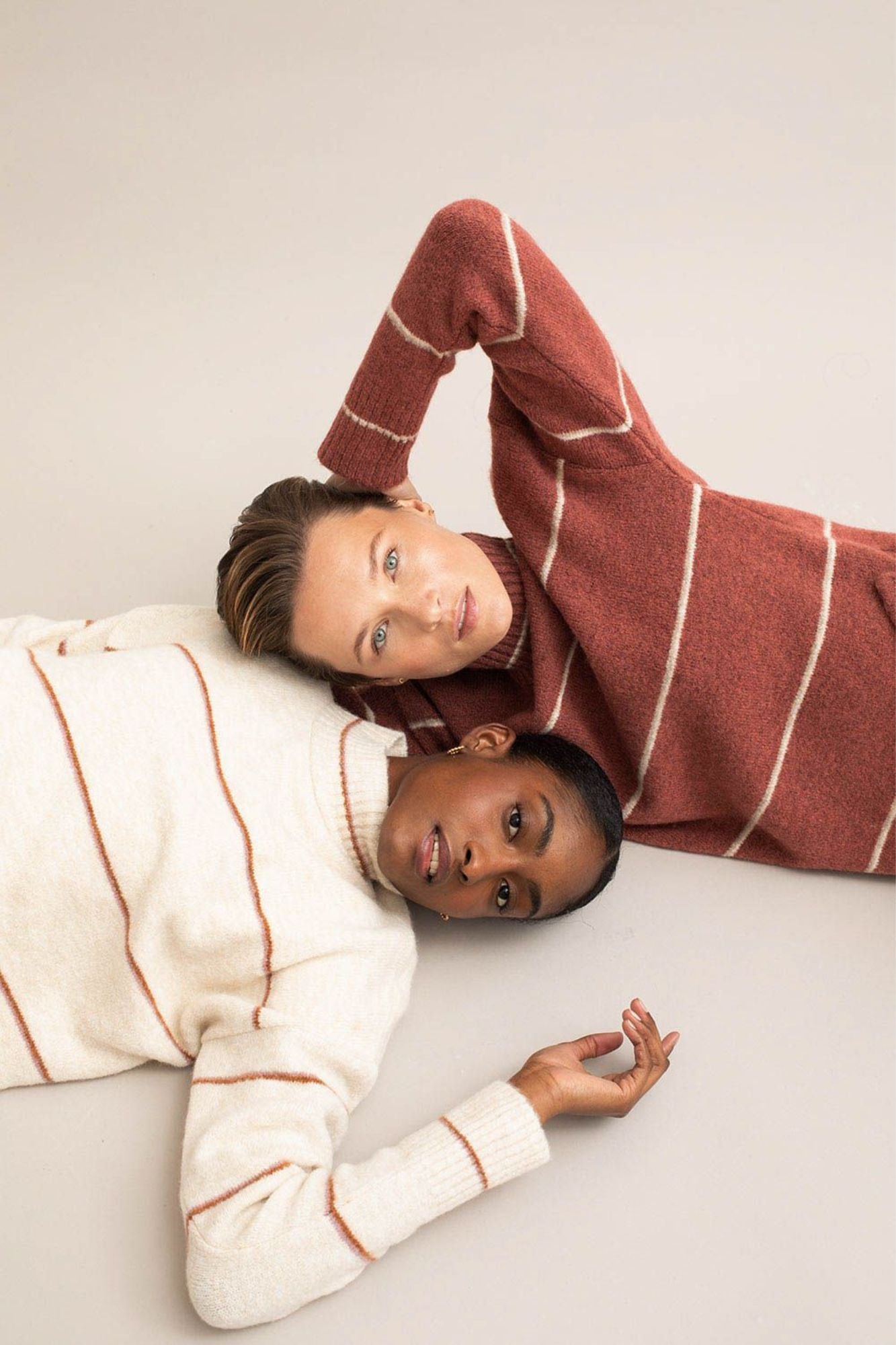 Get ready to elevate your wardrobe with the Eume Sweater! Featuring a trendy mock neck and ribbed cuffs and hem, this striped sweater is the perfect balance of style and comfort. Wear it all day, for any occasion, and stay warm and fashionable. Don't miss out on this must-have piece!