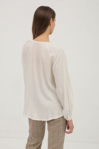 Stay cool and stylish all summer (and even into fall) in our 'Isna' peasant top. This button-front blouse features a flattering v-neckline and slight balloon sleeves, made from a comfortable and chic crepe-like fabric. Perfect for any occasion!
