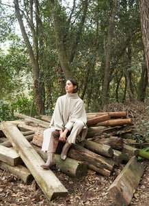 Sicoro is a poncho with a high collar and contrast piping detail on the front and hem. You can multi-position this poncho and choose however you want to wear it!