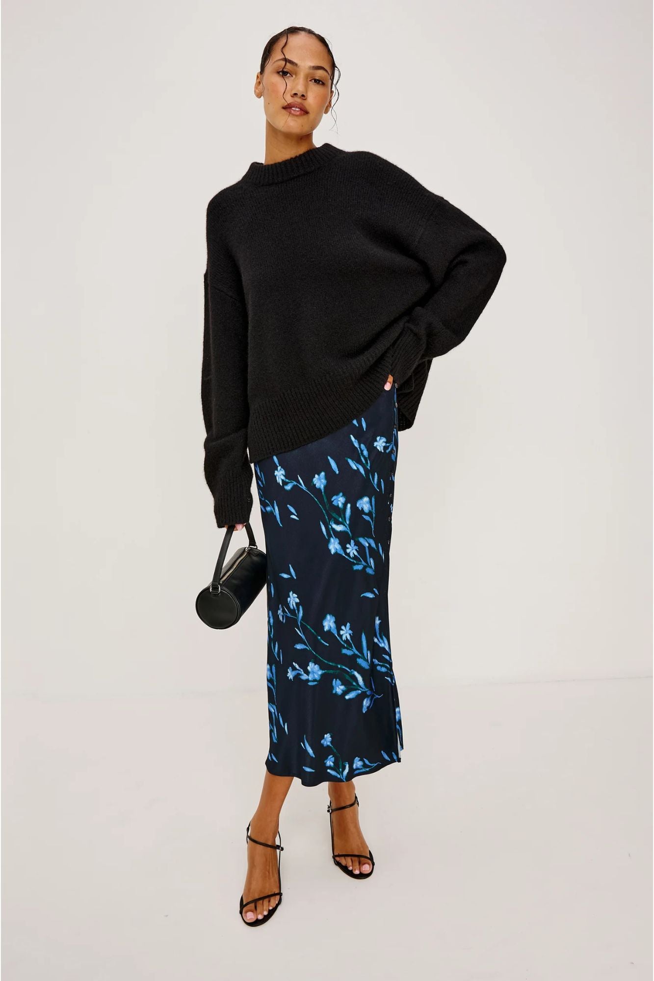 Introducing the Anya Skirt, a midi-length skirt made from lustrous satin crepe with a lovely floral print. Its high waist and elastic waistband ensure a comfortable pull-on design. Part of the Rails Eco Collection, featuring recycled and organic materials from the world's finest mills. Look stylish and eco-conscious!