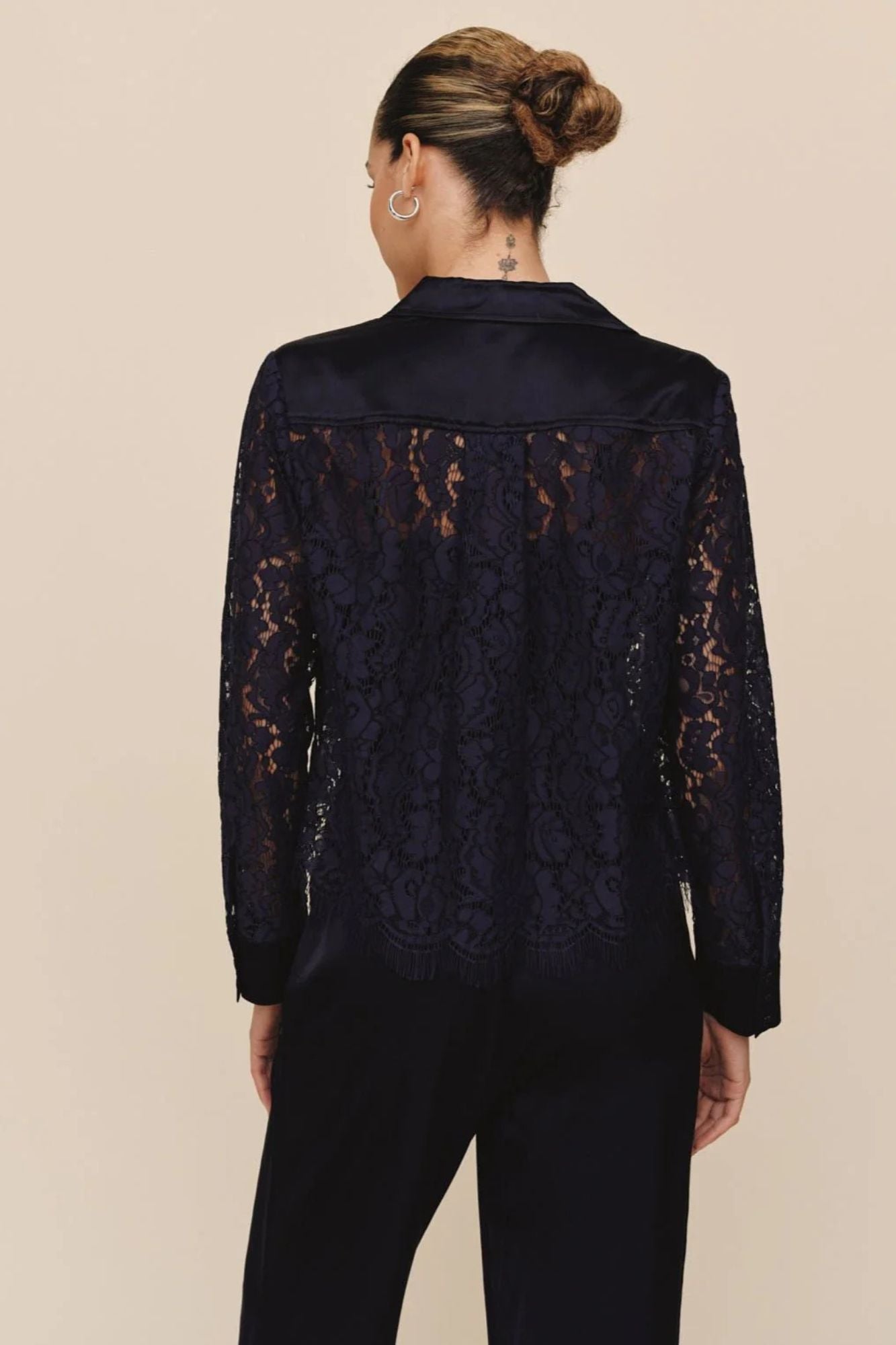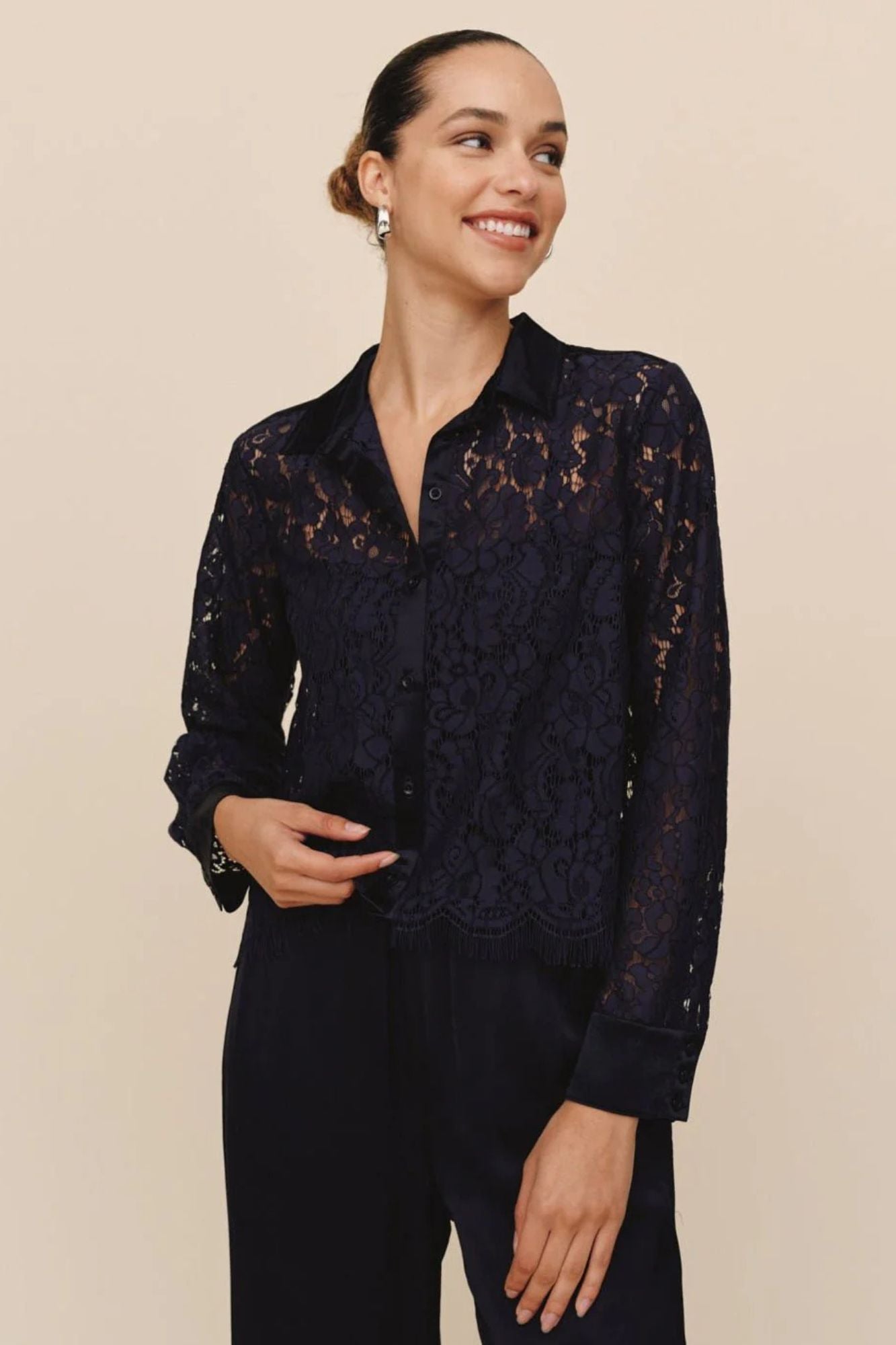 Effortlessly chic and undeniably romantic, this Lace Contrast Button Down brings sheer elegance to your everyday rotation. The relaxed fit drapes beautifully over your frame, while the full lace body adds lightweight texture and feminine flair. Satin trims—from the cuffs and collar to the placket—introduce a polished contrast that catches the light just right. Long sleeves keep things refined without sacrificing that breezy, go-with-the-flow vibe. Layer it over a slip or tank for the perfect balance of coverage and style.
