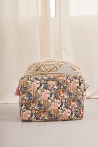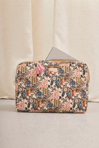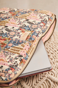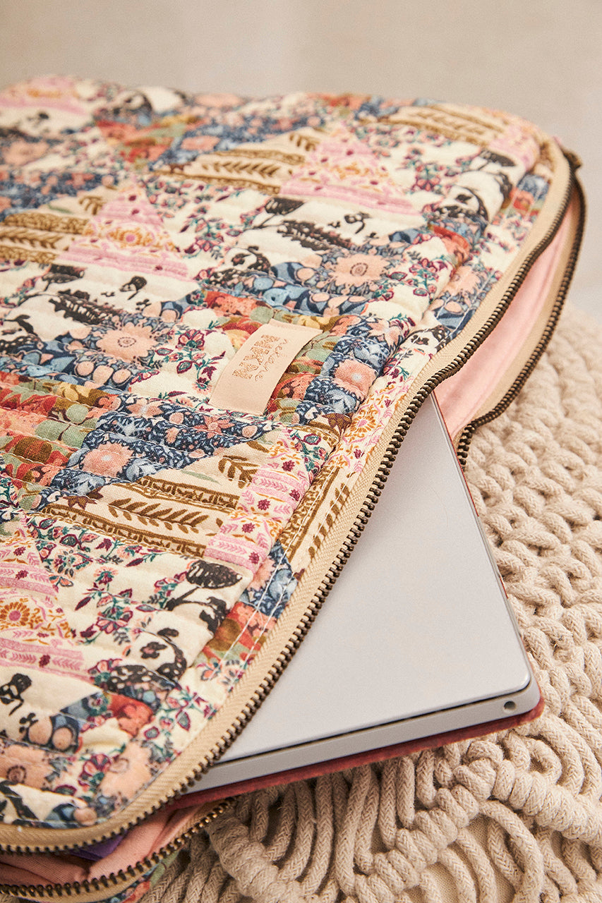 Padded laptop/iPad case. Patchwork design. Zipper closure with pompom detail. Dimensions (width x height): 37 x 27 cm
