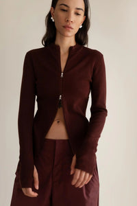 Gabrielle's got the moves—and the jacket to match. This ribbed zip-up is your new go-to for those crisp mountain mornings and breezy evenings. The high collar and full-length sleeves deliver serious warmth without the bulk, while the tailored fit keeps things sleek and put-together. Soft, stretchy ribbed fabric moves with you, whether you're heading to brunch or hitting the trails. Zip it up, look effortlessly cool, and feel cozy all day long.