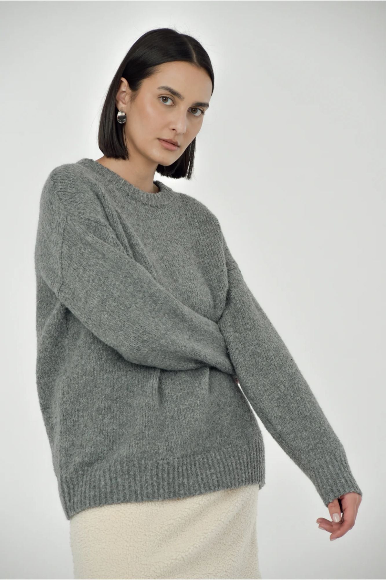 A crewneck with a relaxed, oversized fit. Knit with a blend of wool, BCI cotton and recycled polyester yarn. It's the perfect soft sweater for a minimalist capsule wardrobe.
