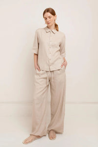 Meet your new go-to for warm weather. The Sadie Pant is crafted from 100% linen—naturally breathable and perfectly lightweight for everyday wear. Designed with an easy pull-on waistband and adjustable drawstring, it sits at a relaxed mid-rise with a roomy, slight wide leg fit that moves with you. Practical side pockets keep things effortless and functional.