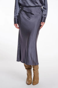 The Vera Midi Skirt features a sleek satin-like finish and a flattering straight cut with a side slit for easy movement. Its subtle shine adds understated elegance, making it perfect for transitioning from daytime casual to evening sophistication. Pair it with knitwear for a relaxed yet chic vibe or dress it up with a blouse for a polished look that commands attention.