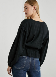Elevate your shirting with the Abra. This top is designed with two adjustable ties at the front that create beautiful ripples in the fabric, as well as billowy sleeves that cinch at the wrists.