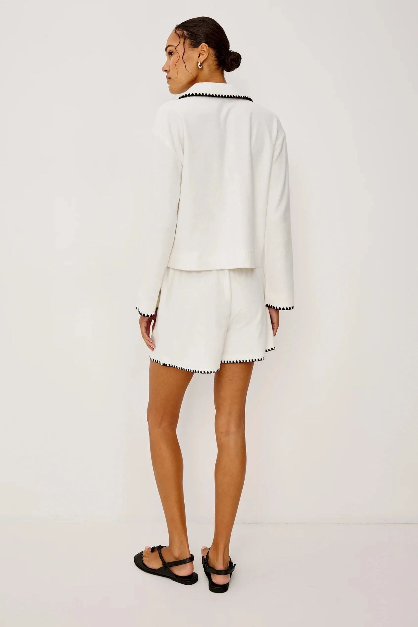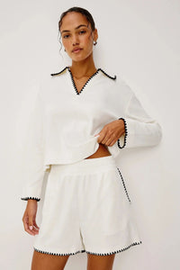 The Cati Top is your new go-to for effortless comfort. Crafted from breathable cotton terry, this sweatshirt features a relaxed silhouette with a chic wide collar and V-neckline that feels as good as it looks. Long sleeves and a loose fit make it perfect for layering or wearing solo, while playful contrast blanket embroidery adds personality to every wear. Pure cotton construction keeps you cozy without the fuss.n
