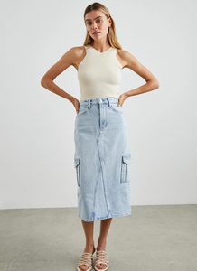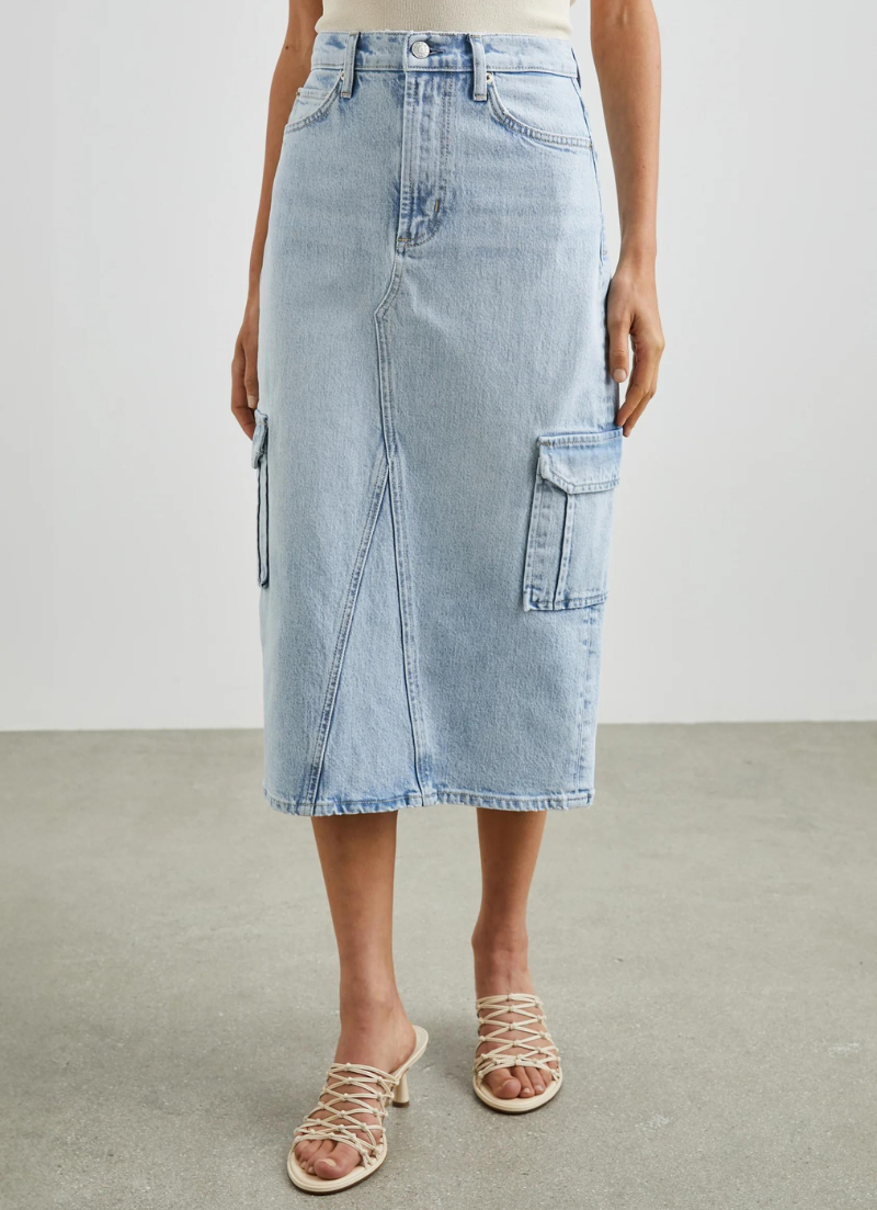 Your favorite Highland skirt with a cargo update. The Highland Cargo has a zipper fly, cargo pockets, and a back vent. Riviera is a light vintage wash.
