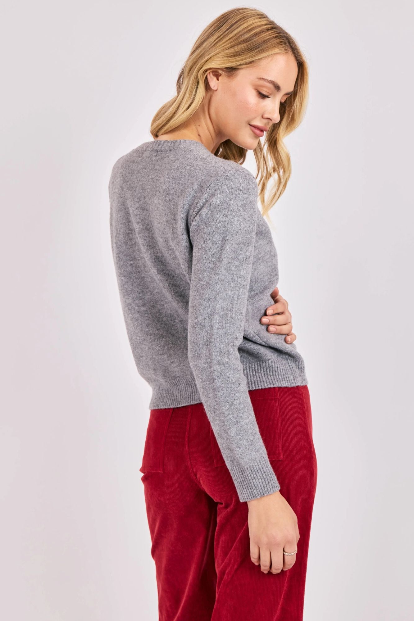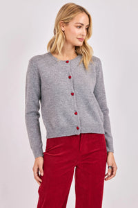 Elevate your everyday wardrobe with the Leighton Heart Cardigan, a charming layer that effortlessly blends comfort with character. Crafted in soft heathered grey, this crewneck cardigan offers versatile styling for any season. The standout feature? Delightful red heart buttons that add a touch of warmth and personality to your look. Perfect for layering over your favorite tee or pairing with dresses, this piece brings both coziness and style to your closet. A timeless essential that celebrates the details.