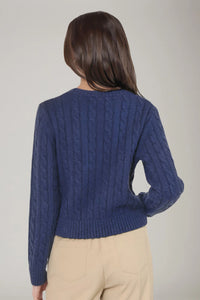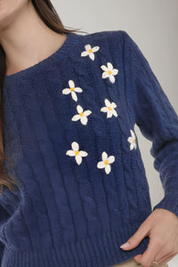 The Lulu Embroidered Daisy Sweater adds a playful twist to a timeless cable-knit design with delicate daisies embroidered along the front left side. Crafted for softness and comfort, this slightly cropped pullover features ribbed trim at the crewneck, cuffs, and hem for a polished finish. Perfect for elevating your casual wardrobe with subtle floral charm.