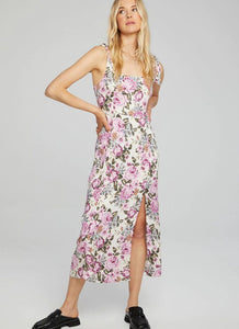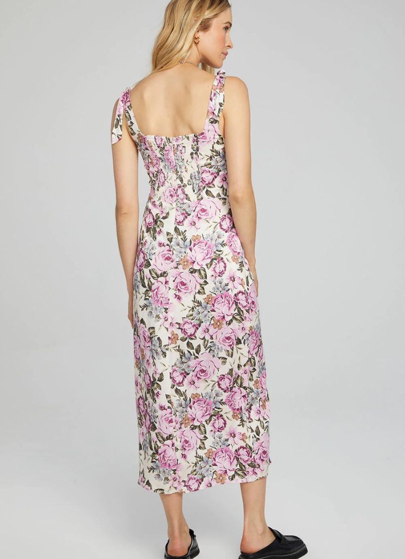 Sleek and chic! The Jestyn Midi Dress features a long slit up one side, thick tie straps and multi coloured florals all over that scream the season.