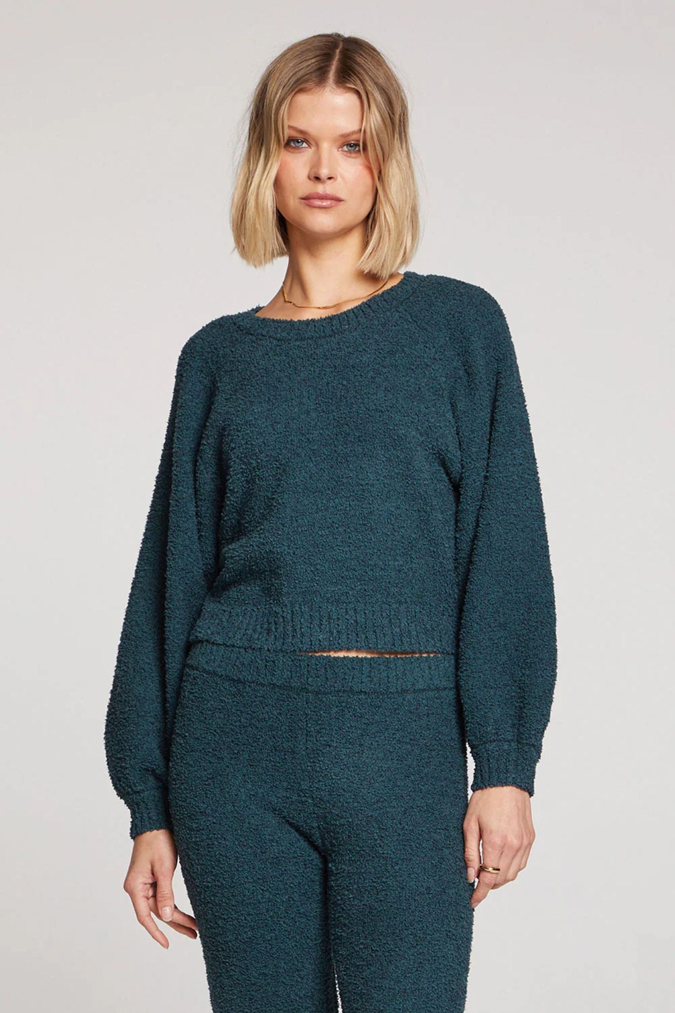 Elevate your loungewear game with the Noble Sweater. Made from a fun, fuzzy fabric, it feels as cozy as it looks. The cropped fit and gigot sleeves add a touch of glam to your comfy wardrobe. Perfect for those looking for a cute and comfortable option.