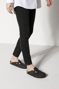 Slip into pure comfort with the Boston Wool Felt N—where cozy meets iconic. This BIRKENSTOCK classic wraps your feet in soft wool felt that feels like a warm hug, while the legendary contoured cork-latex footbed molds to your unique shape with every wear. The suede-lined footbed keeps things plush, the flexible EVA sole lets you move freely, and the adjustable buckle strap ensures the perfect fit. Made in Germany, this is laid-back style that actually supports you.