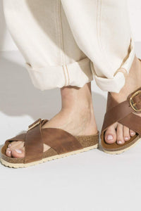 The Siena sandal gives you a new take on the classic two-strap design, with crossover straps and an oversized, elegant pin buckle. Oiled leather gives you a perfectly lived-in look, designed to age beautifully with wear. This Semi-Exquisite style features a contoured footbed wrapped in luxuriously smooth leather for a premium touch you'll feel as soon as you step in.