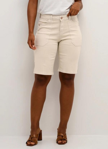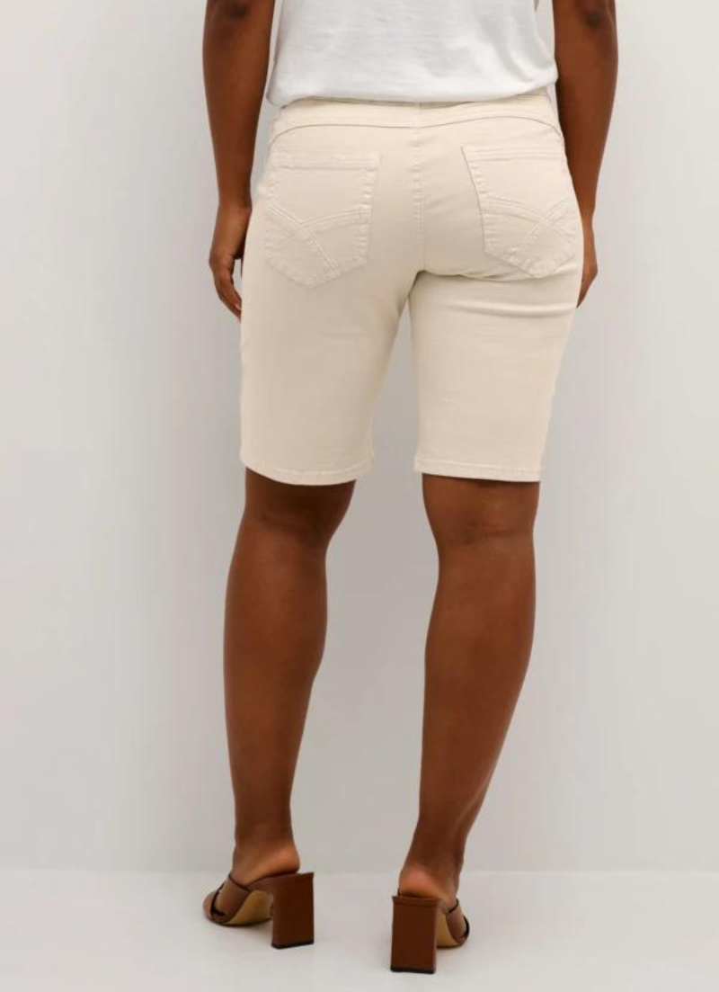 Get ready to turn heads in these Beautiful Cream Ann Twill Shorts! Designed for a fantastic fit, these light beige shorts feature 2 patch pockets on the front and a length that hits above the knee. Perfect for dressing up with a tight-fitting, dressy look. Don't miss out on adding these versatile shorts to your wardrobe!