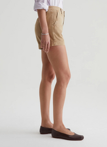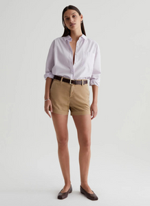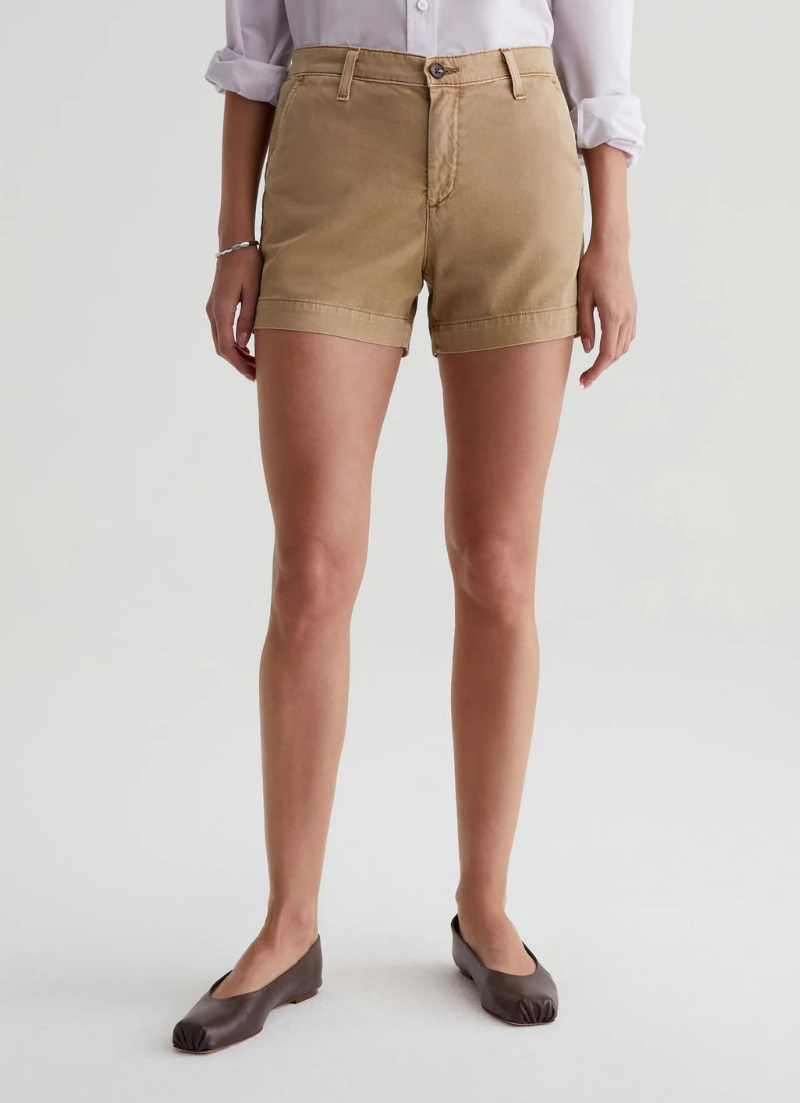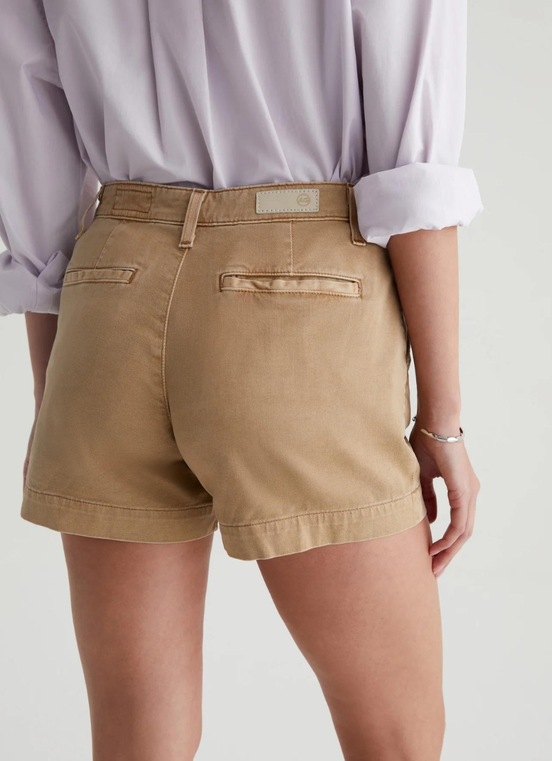 The Caden Short for women features a relaxed fit in an A-line silhouette. Sulfur-dyed for a warm khaki color, this trouser style is tailored in lightweight broken twill with comfort stretch and a soft, refined feel. Complete with slant front pockets and welt pockets at the back.