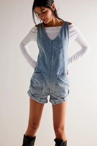 Upgrade your summer style with Free People's High Roller Shortall. This slouchy, relaxed fit jumpsuit features a timeless denim fabrication and seam details for a laid-back yet chic look. With oversized pockets and adjustable shoulder straps, this shortall will be your go-to for endless adventures.
