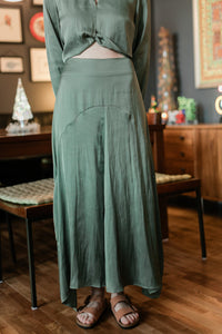 Get ready to turn heads in the Velazquez Skirt! Made with a bias cut satin and featuring an asymmetric hem, this midi skirt is both luxurious and unique. Complete with a back hidden zip closure for a seamless fit. Stand out from the crowd with this statement piece.