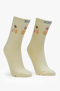Step up your sock game with The Half Step! These pale yellow tube socks feature cheerful blue text and warm-toned graphics that bring a playful message straight from MOTHER. Perfect for adding a splash of fun and comfort to your everyday look.