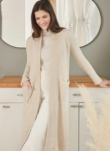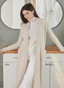 The Celine Shaker Cardi is the perfect blend of style and comfort. A thick and cozy knit in super fine merino wool. The perfect length to make this long cardigan modern and chic. Wear with your favorite denim or leggings and boots!