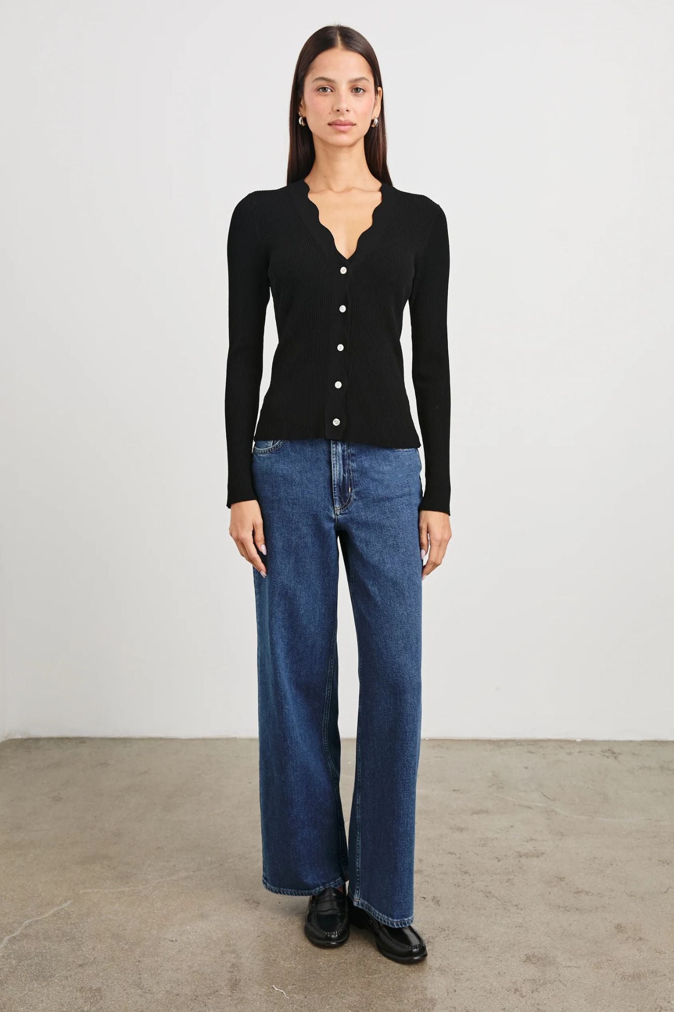 Introducing the Dita Cardigan - an edgy take on the classic style. Made from a ribbed viscose blend, it offers a slim fit with a scalloped trim and natural shell buttons. Versatile enough to layer or wear on its own, this cardigan will showcase your shape effortlessly from day to night.