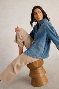 Experience timeless style with the Eden Denim Jacket. This versatile piece features a slightly oversized fit and raglan sleeves for a effortlessly-undone look. Perfect for any occasion, it's the denim jacket you'll want to wear everywhere!