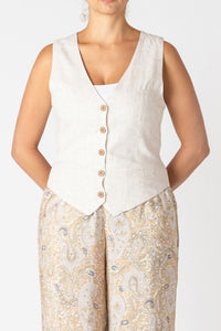 Elevate your warm weather wardrobe with our stylish Single Breasted Vest. Made from breezy linen and featuring a timeless button front design, this sleeveless vest exudes effortless sophistication. Perfect for any occasion, it's a must-have addition for any fashion-forward individual.