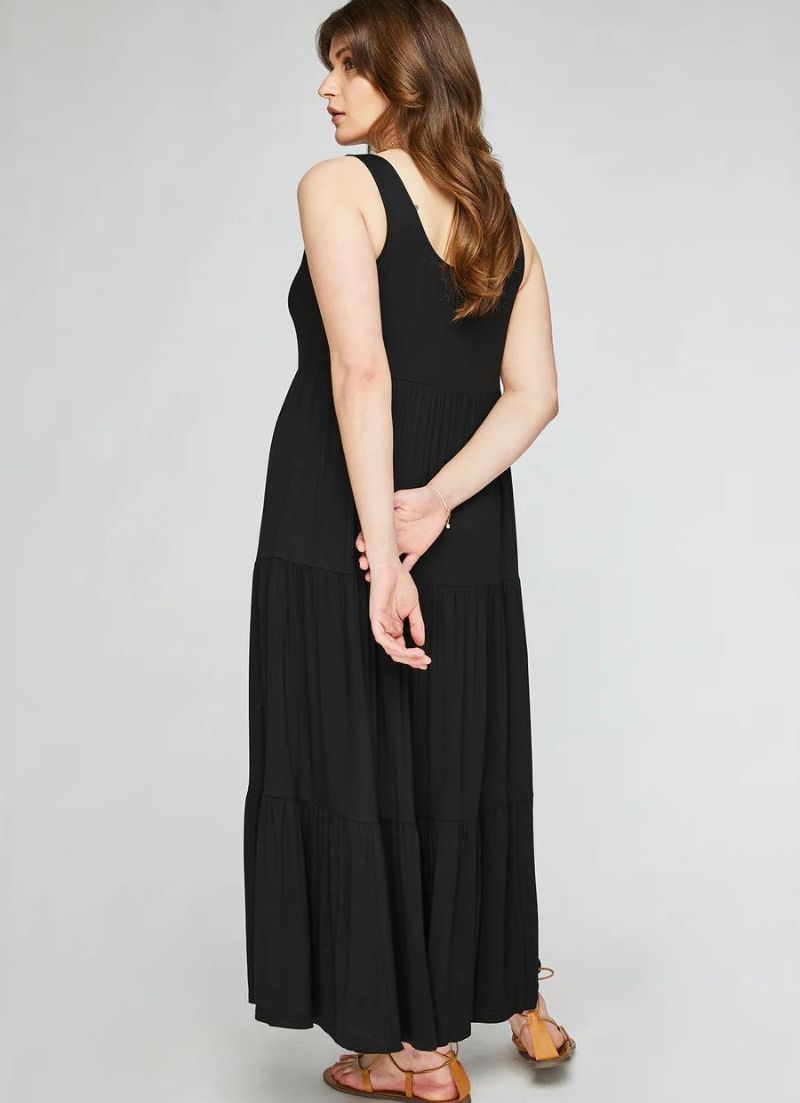 The Axel Dress features a gathered skirt and a front side slit. The effortless silhouette is perfect for everyday wear.