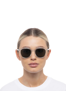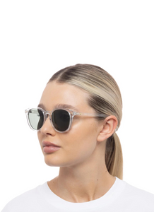 Finished in a vintage translucent clear frame paired with contrast dark lenses.
