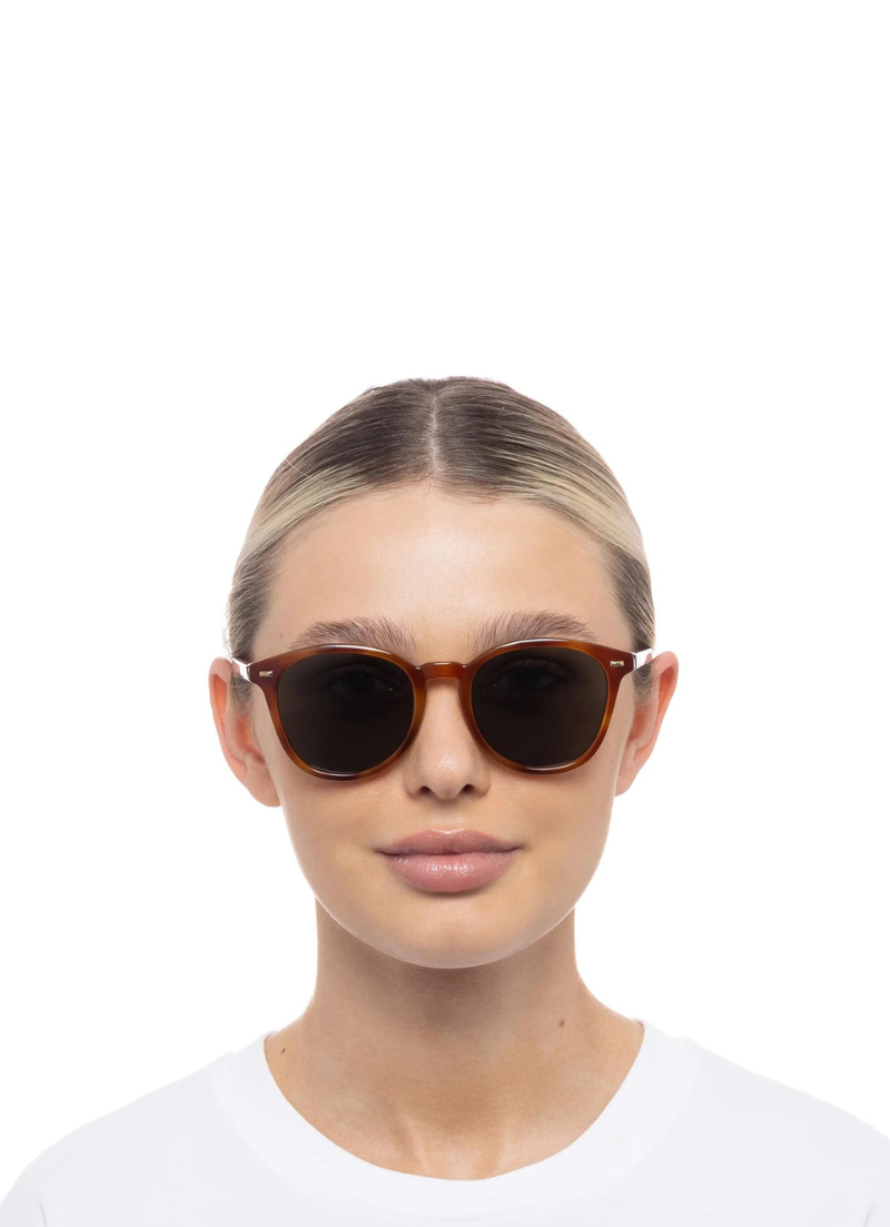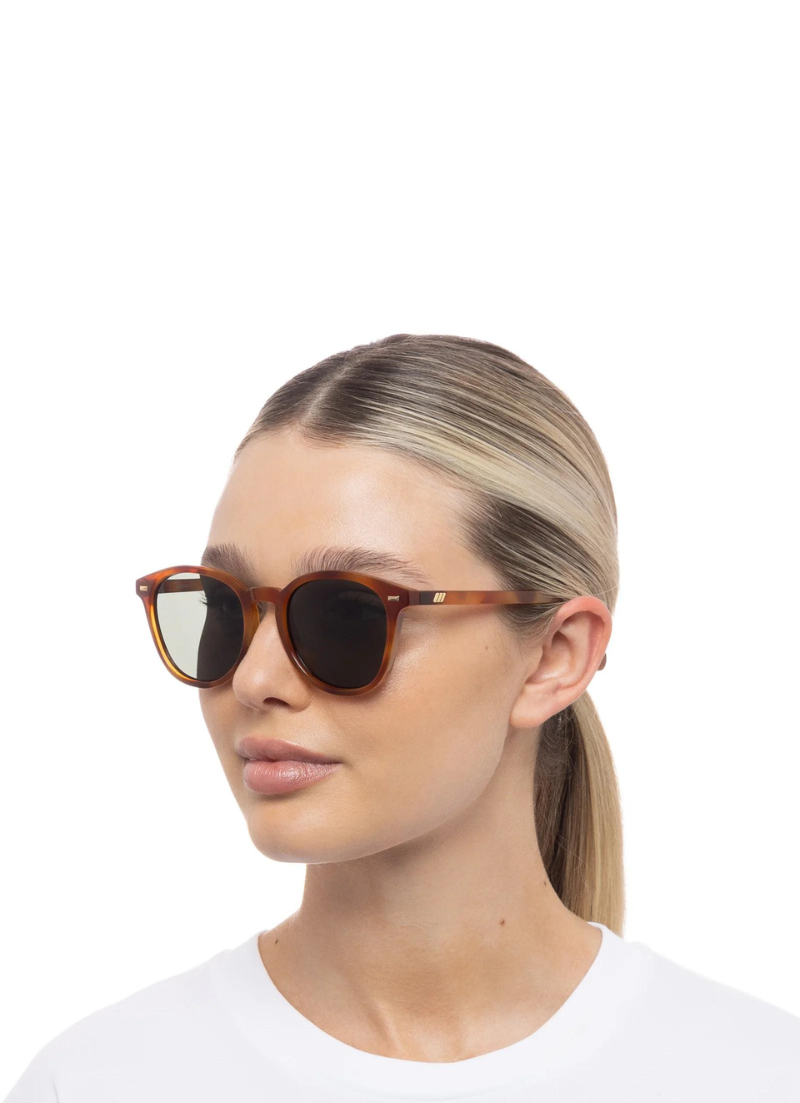 With vintage inspired details, this iconic Le Specs style is the perfect all-round sunglass offering a timeless aesthetic. Featuring a keyhole nose bridge and refined angles, this midsize style is finished with discreet metal rivet detailing and Le Specs flagstripe metal hardware.