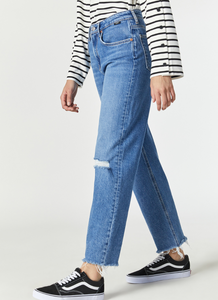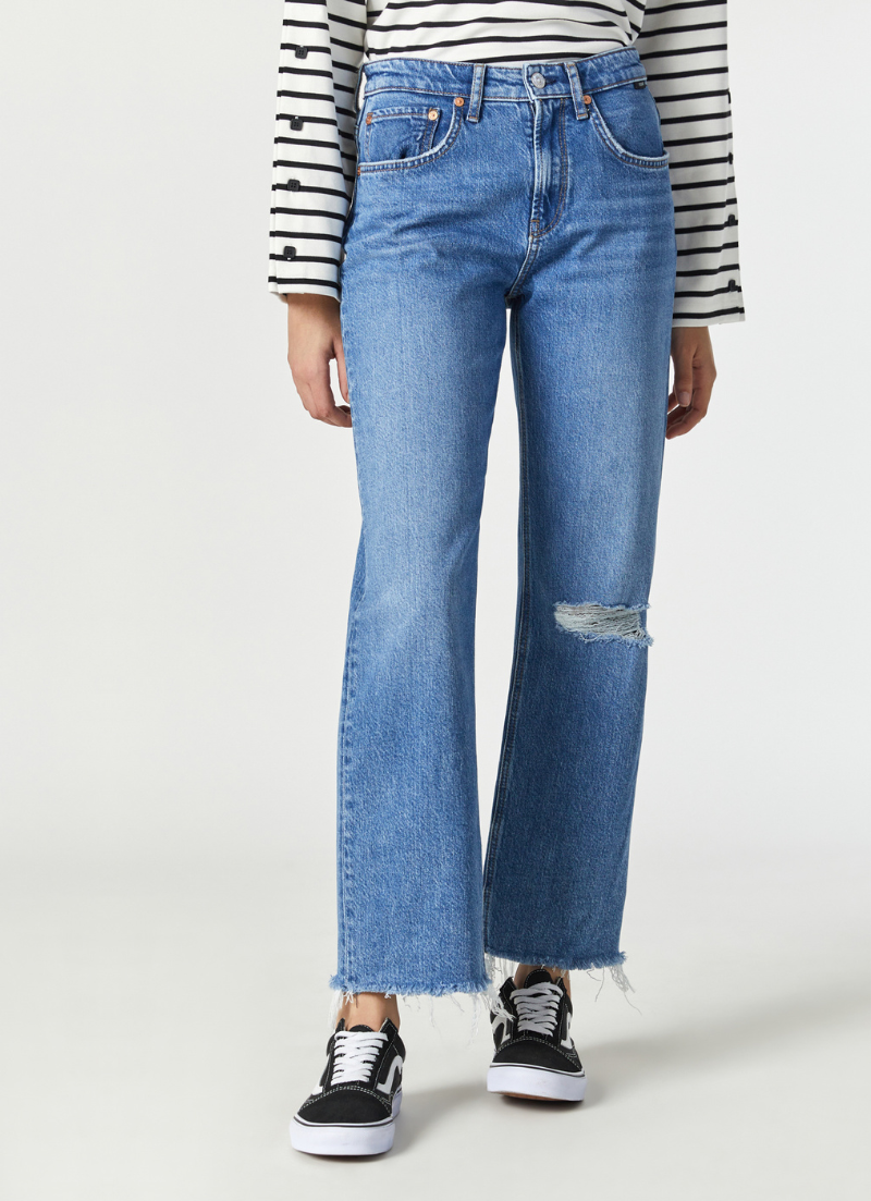 Recycled Blue is a mid-weight denim with a bit of stretch. Refibra™ technology, which incorporates recycled pre- and post-consumer materials, gives the fabric breathability and the soft texture of authentic denim. These wide leg jeans have a high rise and straight leg for a fit that’s slim through the waist and hip then relaxed and roomy from the thigh down.