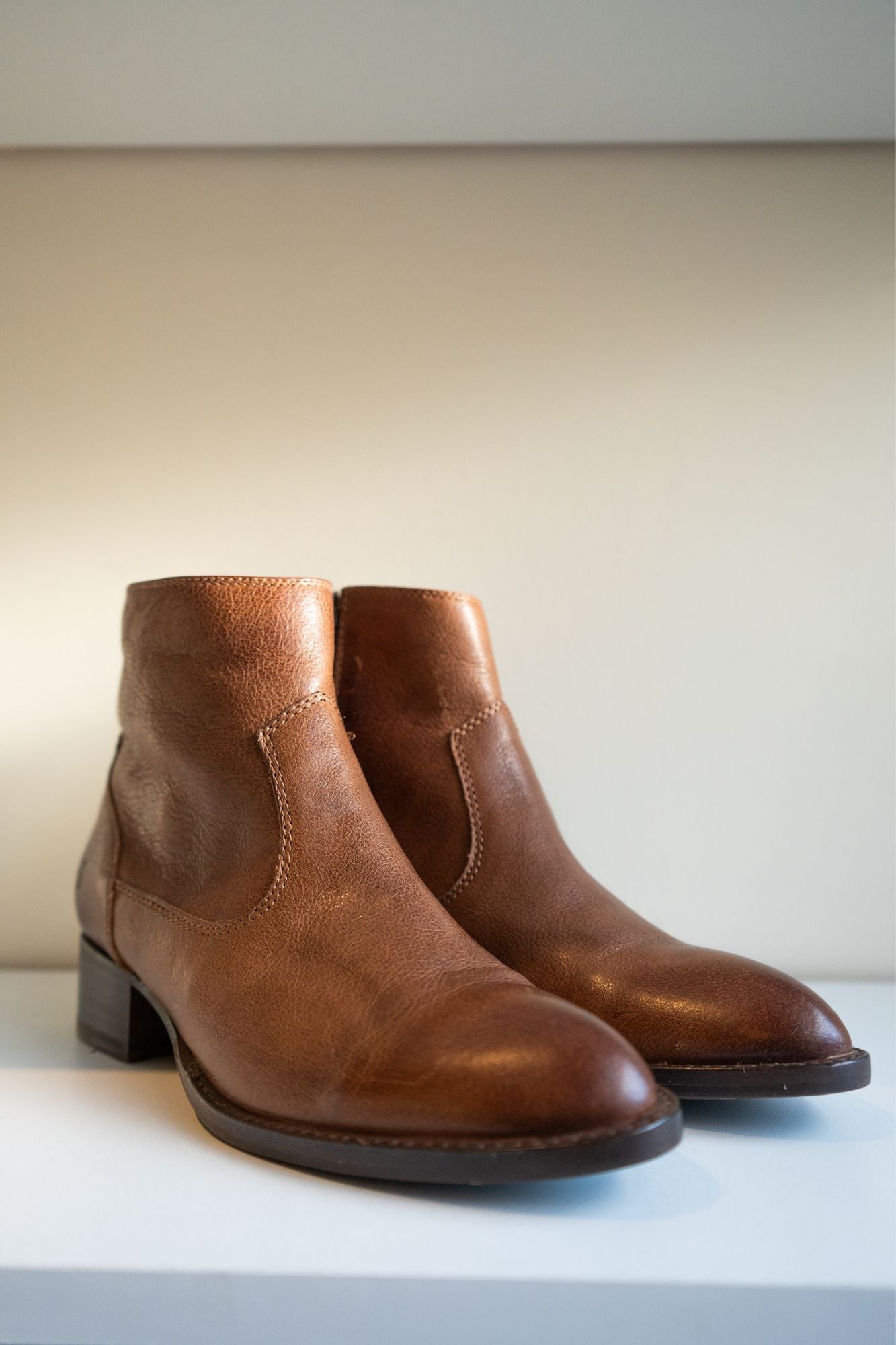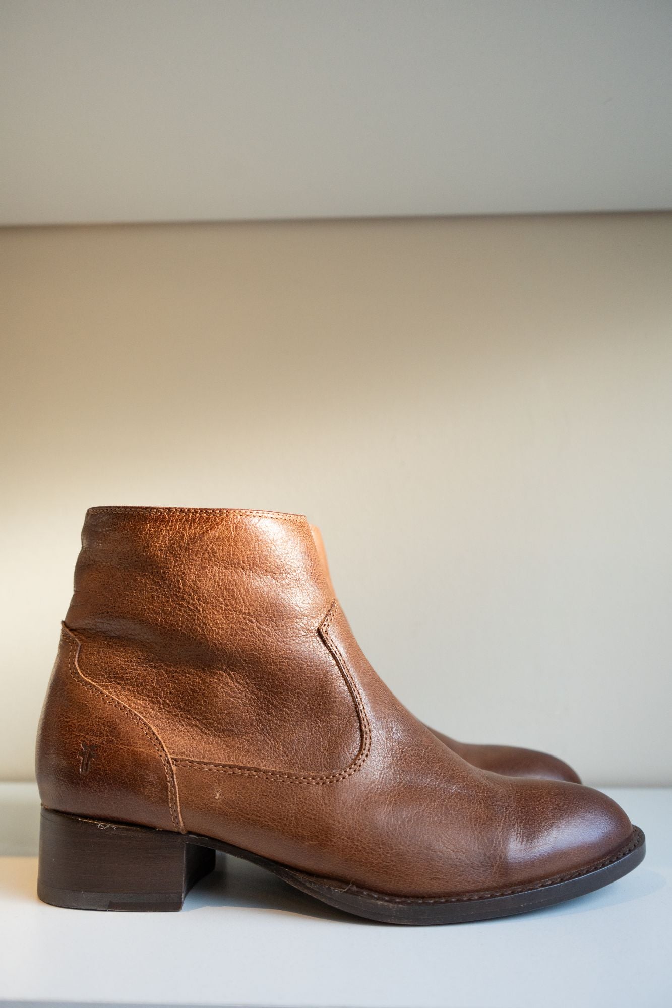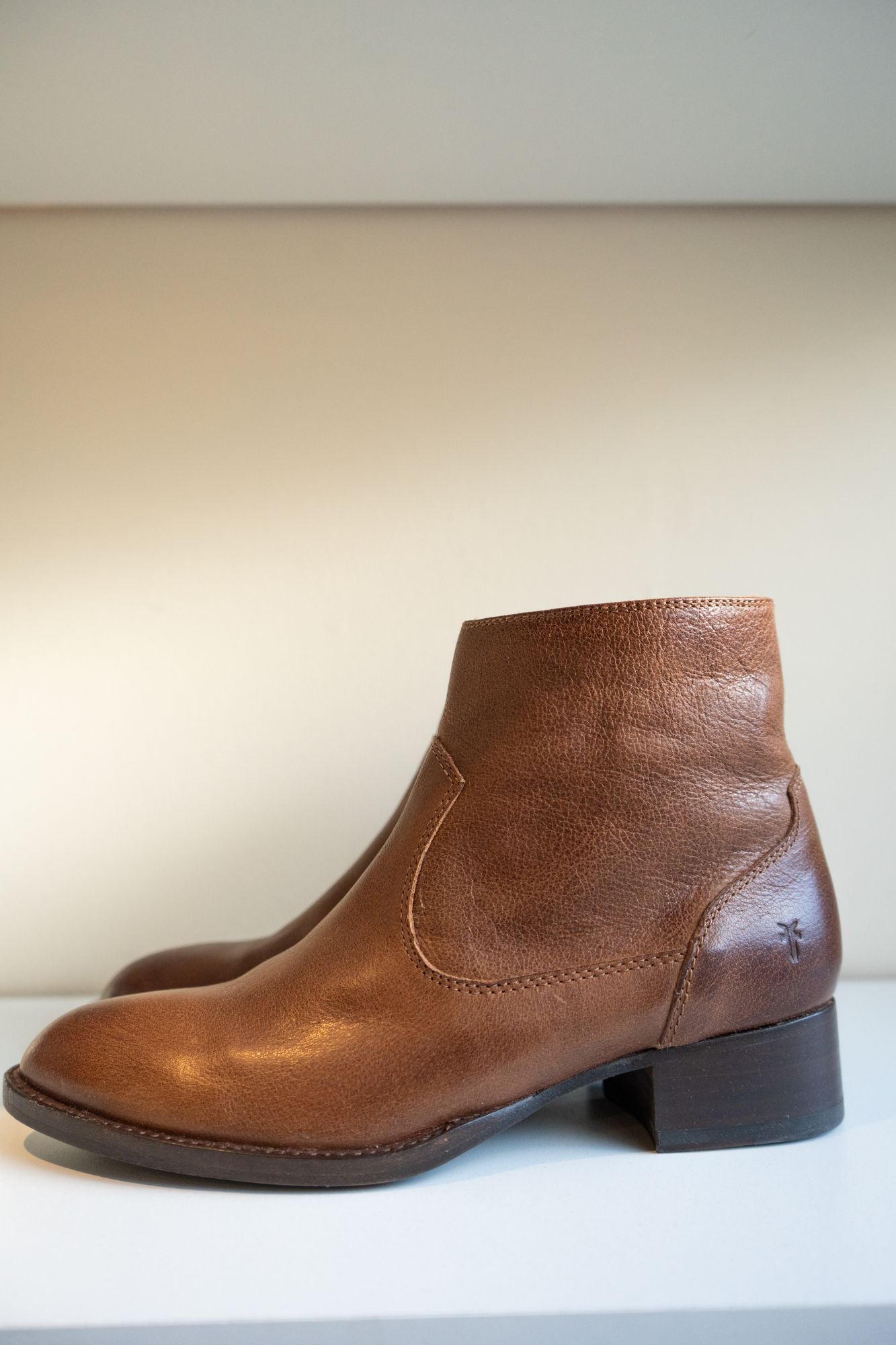 Effortlessly add a touch of vintage country style to any outfit with the Brooke Short Inside Zip ankle boots from Frye. These boots feature a practical block heel and a convenient zipper closure on the inner ankle, making them both stylish and easy to wear. Step out in timeless fashion with these leather boots.