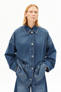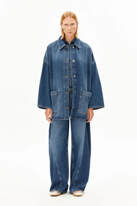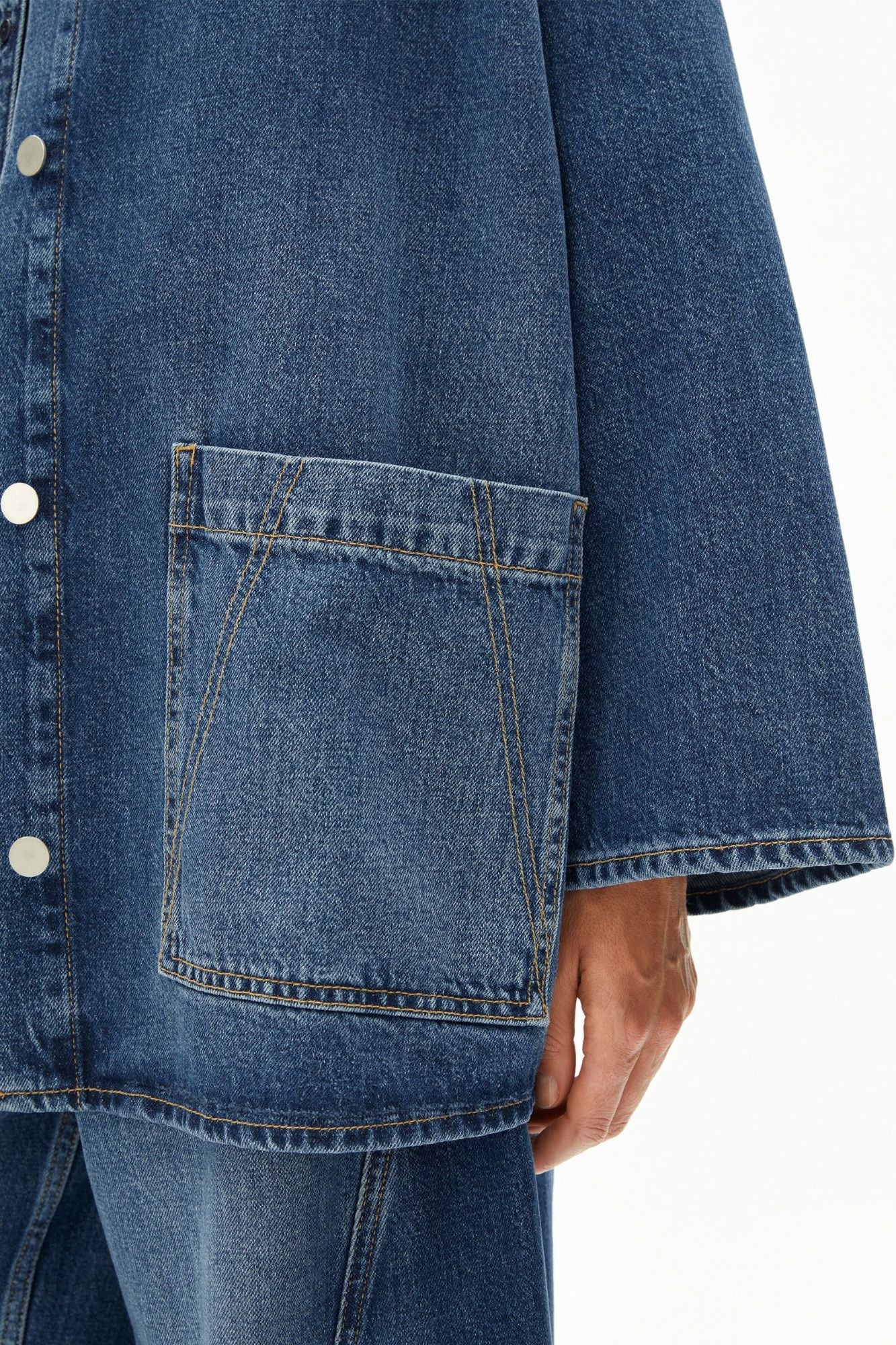 Effortless style meets comfort in this oversized denim shirt. Featuring a classic round neckline, long sleeves, and structured shirt collar, it's designed for a relaxed, contemporary fit. Practical patched pockets and a button placket add functional detail to this versatile wardrobe essential. Perfect for layering or wearing solo, this piece transitions seamlessly from casual weekends to laid-back office days.