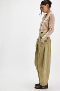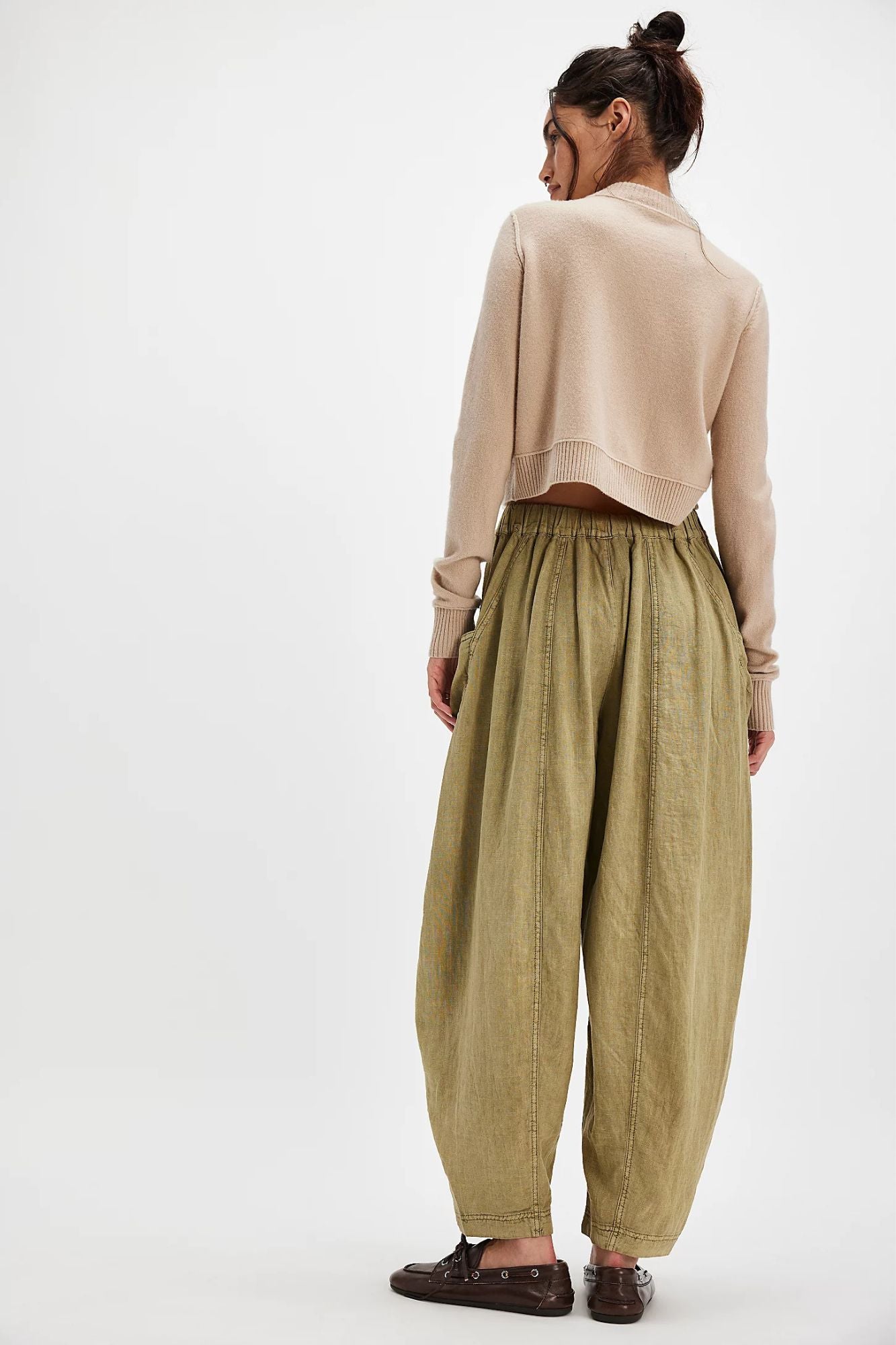 Introducing the High Road Solid Pull-On Barrel Pants - the epitome of effortlessness. With its mid-rise, tapered barrel silhouette, pull-on design, and ankle-length inseam, these pants are both stylish and practical. Featuring dropped pouch pockets and a solid fabrication, they can be paired with sandals for a beachy look or moto boots for a tougher edge. Don't miss out on this versatile must-have!