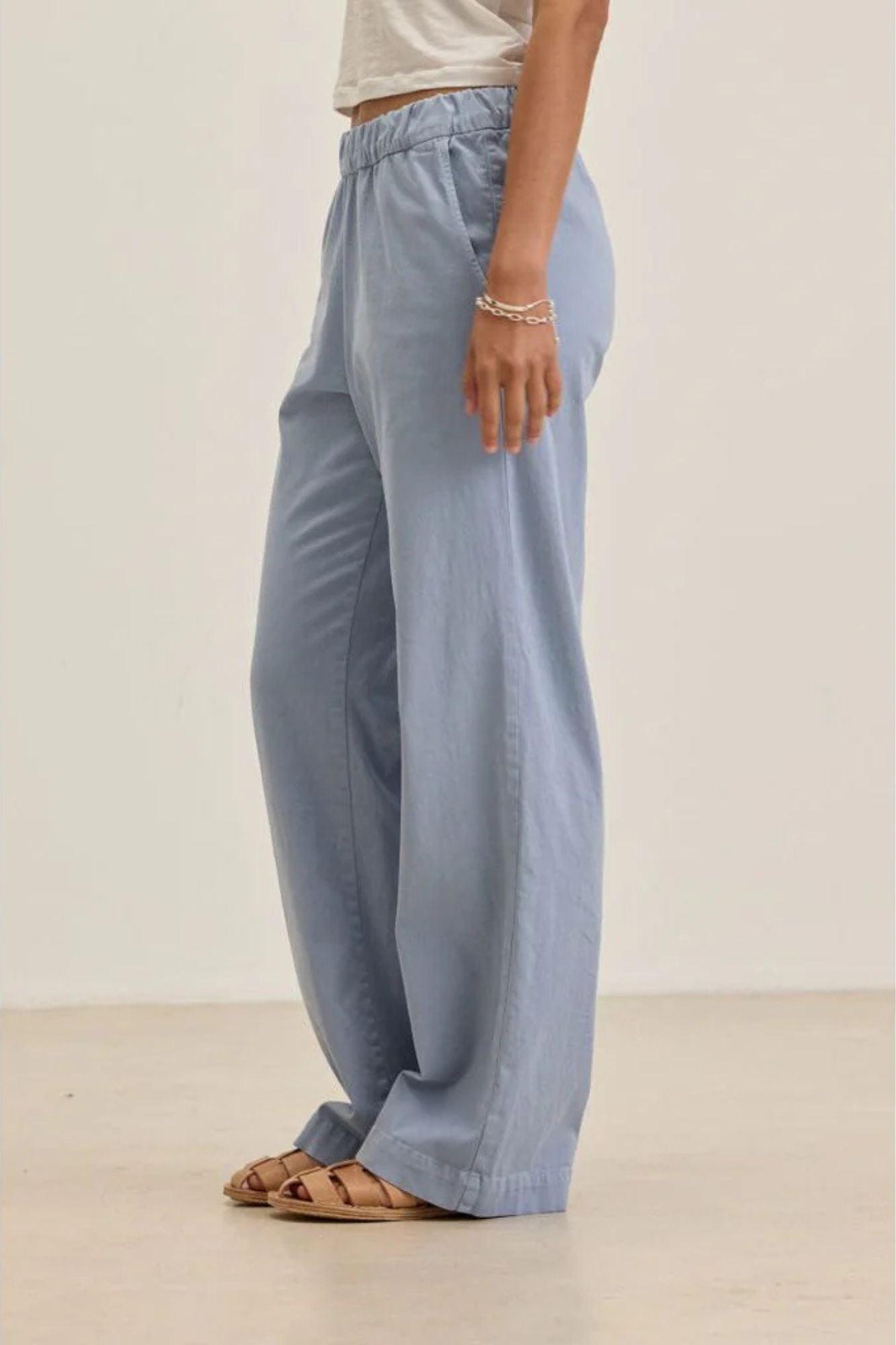 Expertly crafted from stretch cotton twill, the Naya Cotton Twill Pant boasts a comfortable, relaxed fit that effortlessly flatters any figure. With an elastic waistband and convenient slash pockets, these wide-leg pants provide both style and practicality in one essential piece. Perfect for versatile, everyday wear.