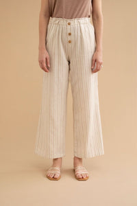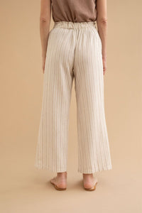 Take a stroll in the Brando Pants, a playful pinstripe number with an elastic waistband and subtle flounced detail. Complete with diagonal pockets and a mock fly, these trousers are perfect for a sophisticated and elegant look when paired with our Pasyon blazer.