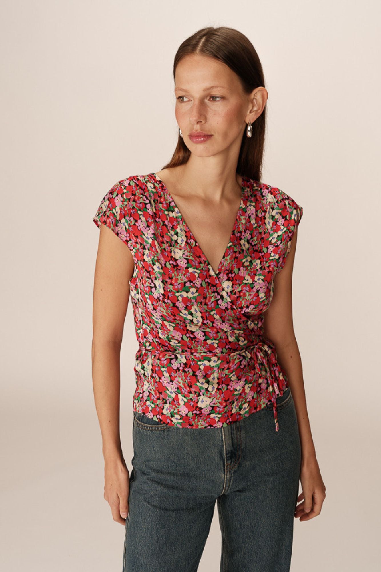 Discover the perfect addition to your wardrobe with the Penny Wrap Top. This essential piece exudes femininity with its confident and carefree style. Featuring a flattering tie belt at the waist and delicate pleat details on the shoulders, this top is sure to enhance your look.