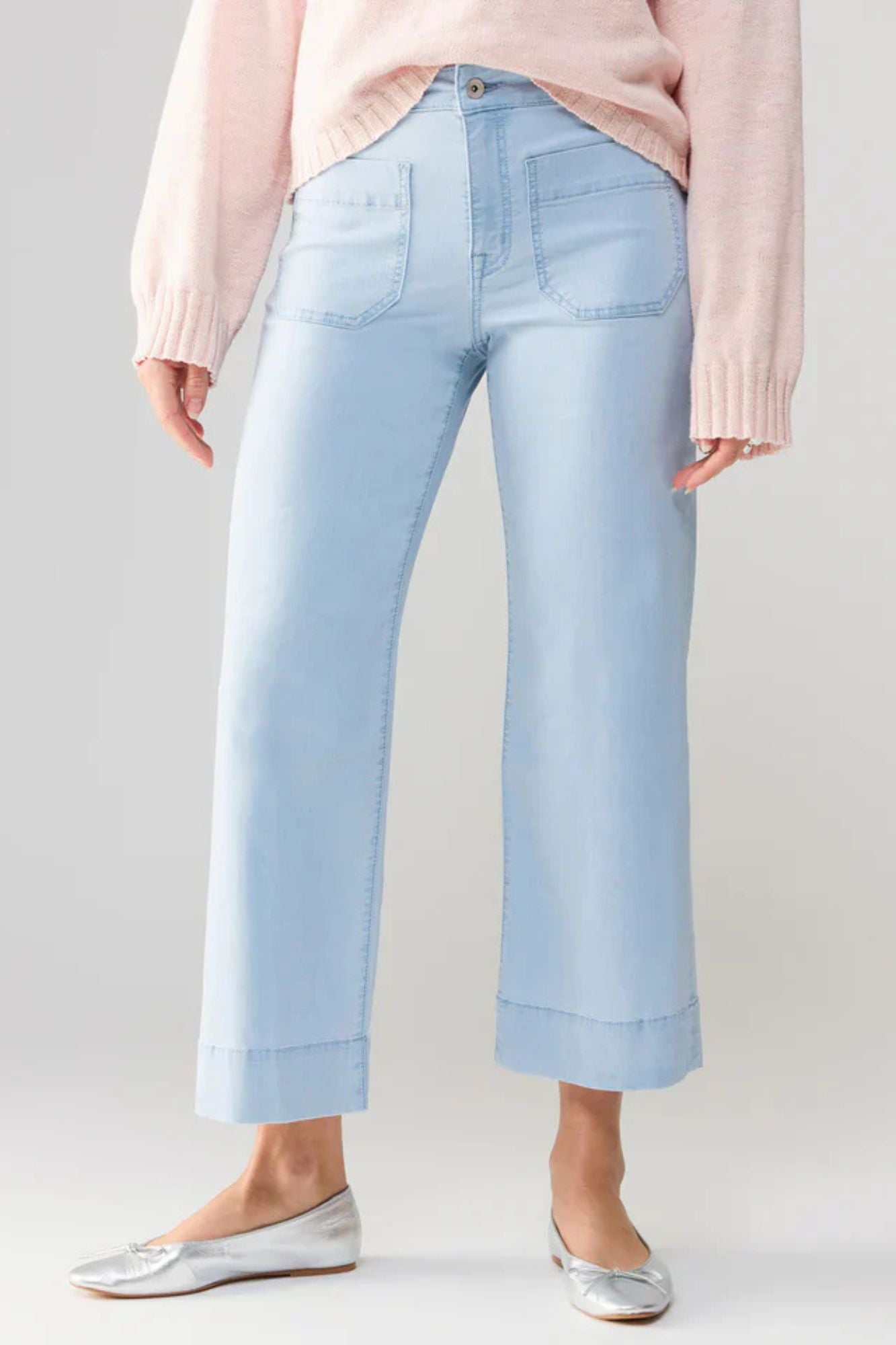 Rock these Marine Crop Standard Rise Wide Leg pants for a playful twist on a classic look. The cropped length and wide leg style add an element of fun to your wardrobe, while the standard rise and multiple pockets provide practicality. Finished with a button and zip closure for effortless wear.