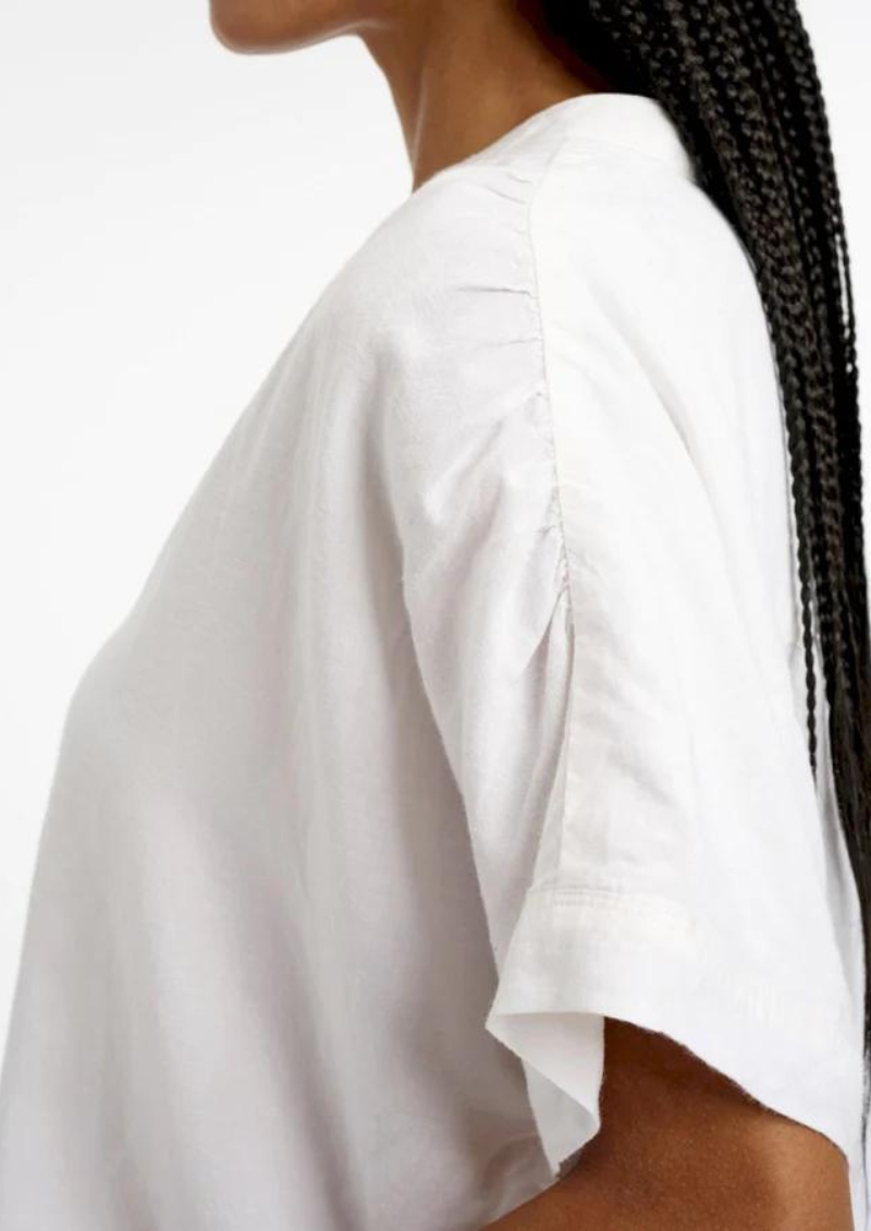 The Wynne Blouse is an elevated top that hangs oh-so-effortlessly. Crafted from a yarn dyed linen blend, its silhouette is loose-fitting yet able to hold its shape. The banded collar has a split V-neck so you can rock those delicate necklaces and its crisp solid color pairs with just about everything in your summer wardrobe.