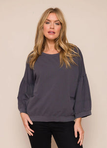 Slouchy gets chic in the Bae. This loose fitting pullover features a detailed balloon sleeve and side slit pockets, and its cropped to hip length makes is perfect to pair with anything from our classic joggers to a maxi skirt. Bea will quickly become a wardrobe staple for the days that comfort must meet cute.