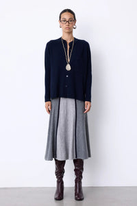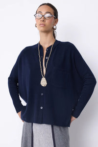 Meet Andrea, your new go-to for effortless elegance. This luxurious women's jumper features a relaxed poncho cut that drapes beautifully, paired with a crisp shirt collar and long ribbed sleeves for that perfect blend of cozy and chic. Crafted from sumptuous 100% cashmere, it's soft enough to live in yet polished enough for anywhere. Subtle details like tone-on-tone buttons, a practical patch pocket, and ribbed finishes keep things interesting. Layer it, dress it up, or wear it solo—Andrea does it all with understated style.