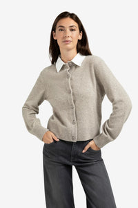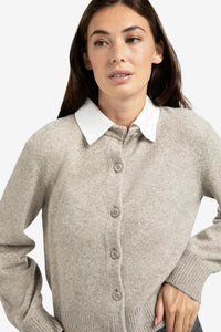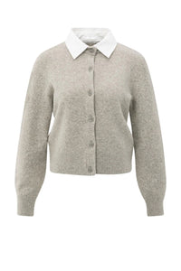 This elegant cardigan combines soft knitted comfort with versatile style. Its classic button closure and long sleeves ensure a timeless look, while the detachable white woven collar adds a fashionable layered touch. With a regular fit and ribbed trims, this piece effortlessly elevates both casual and dressy outfits, making it a must-have for your wardrobe.