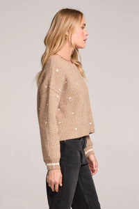 The Charmer Sweater is your go-to piece for effortless style with a touch of whimsy. This playful knit features an adorable petite heart motif and crisp white wrist bands that add a preppy finishing touch. The high neckline and gently cropped silhouette work together to create a flattering, modern silhouette, while the subtle textured fabric brings depth and visual interest. Perfect for layering or wearing solo, it's the sweater that proves sophistication doesn't have to be serious.