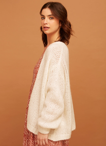 The Hendy Open Cardigan is a winter essential crafted for comfort with dropped armholes, ribbed cuffs and waist, and an oversized fit for effortless layering. Perfect for casual looks with maximum warmth and style! The model is wearing a size S.